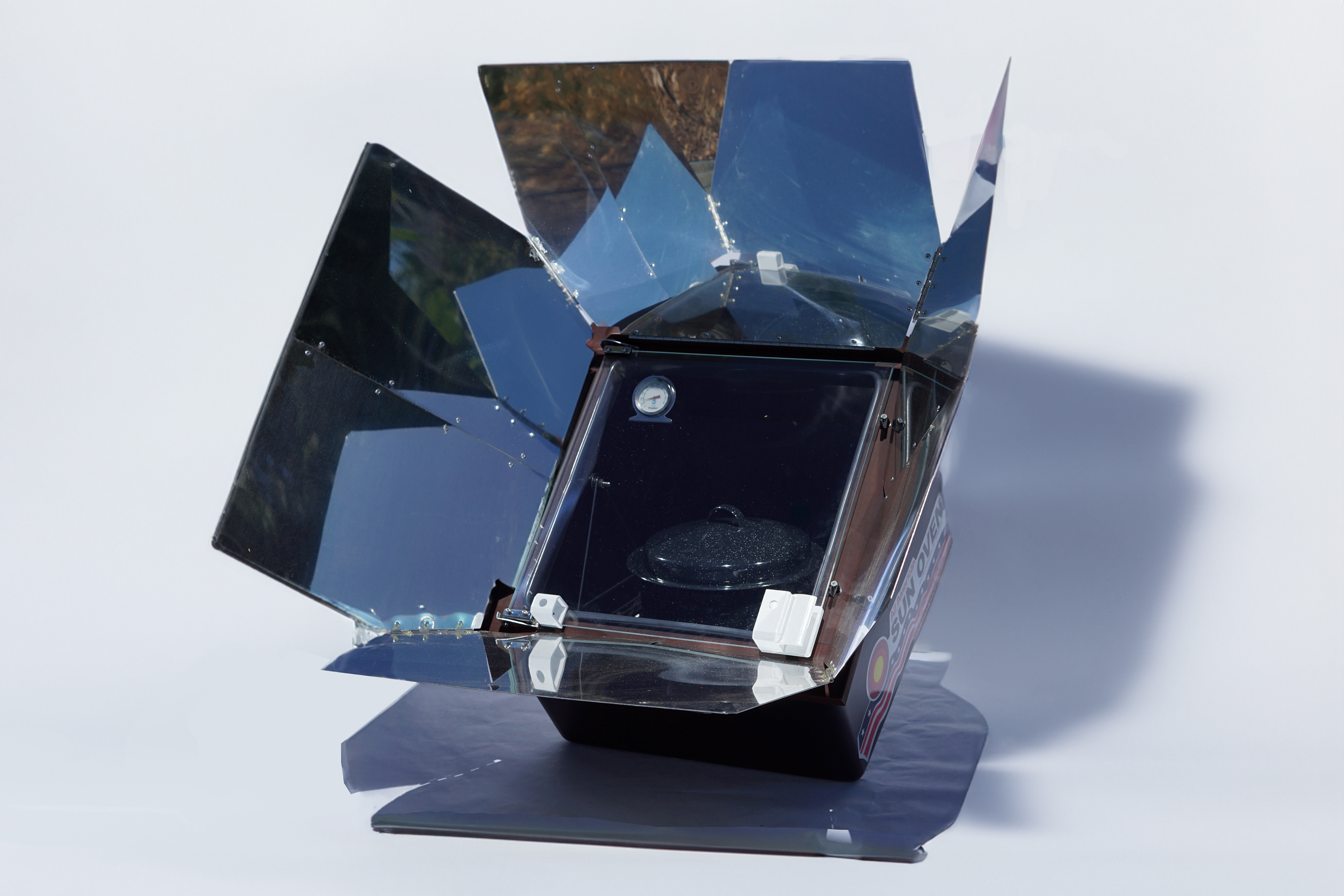 Panel cookers look like an open box with the inside surface covered with reflective material. The light is directed towards the cooking container inside a glaze. They are good for baking and boiling food. Typical temperatures range from 250-300°F. They cook like a slow cooker.